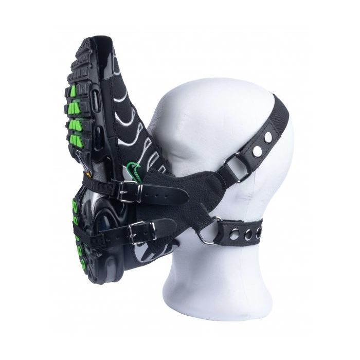 De Masker Snuff My Sneaker is speciaal ontworpen om gemakkelijk een schoen in te plaatsen. De elastische banden zijn verstelbaar doormiddel gespen en drukknopen. Het masker is gemaakt van rundleer. Schoen wordt niet meegeleverd.