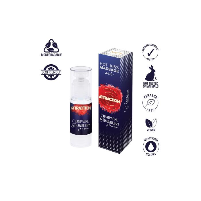 De MAI Attraction Hot Effect Champagne Aardbei Massage Olie! Deze 50ml veganistische formule is perfect voor intiem voorspel en orale genot, en biedt een unieke ervaring die je zintuigen prikkelt. Met een verfrissende mix van koele munt, pittige limoen en een vleugje zoetheid, zorgt deze olie voor een zacht verwarmend gevoel op intieme delen. Wat deze massageolie echt bijzonder maakt, is dat hij niet alleen bedoeld is om te masseren, maar ook veilig is om te kussen en te likken. Transformeer je sexy massage in een spannend voorspel met elke aanraking. Bovendien is de olie parabenenvrij, wat betekent dat je je geen zorgen hoeft te maken over irritaties. Gemaakt in Spanje volgens strikte GMP-richtlijnen, kun je erop vertrouwen dat je een product van hoge kwaliteit in handen hebt, dat ook nog eens ethisch verantwoord is geproduceerd. Maak je klaar voor een nieuwe dimensie van genot en laat de MAI Attraction Hot Effect Champagne Aardbei Massage Olie je helpen om onvergetelijke momenten te creëren!