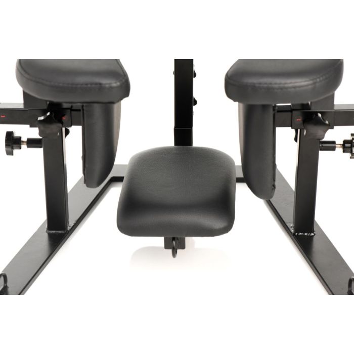 Comfort en aanpassingsvermogen staan centraal in het ontwerp van deze stoel. De throne is volledig verstelbaar, zodat jullie beiden de perfecte ergonomische positie kunnen vinden. De rugleuning en het zitvlak zijn in hoogte verstelbaar voor de persoon die op de troon zit, terwijl de hoofdsteun en de hoofdkussens in hoogte en breedte verstelbaar zijn voor degene die op zijn rug ligt. De speciale hoofdsteunen zorgen ervoor dat het hoofd van je partner stevig op zijn plaats blijft, zodat ze niets anders kunnen zien dan jouw achterste. Dit zorgt voor een intensere ervaring en laat je partner volledig gefocust op het plezier dat ze jou kunnen geven.