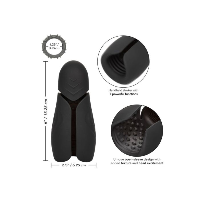 Laat je verwennen door Masturbator Elite Pro Stroker van Calexotics. De Elite Pro Stroker is een unieke en open masturbator waardoor jij hem perfect rond je penis heen kunt brengen. Deze Stroker heeft een open-sleeve ontwerp met 7 verschillende vibratiefuncties en wordt geleverd met 3 rekbare cockringen met structuur die jij gebruikt voor een extra harde erectie. De Elite Pro Stroker is compact en ligt fijn in de hand. Doordat deze masturbator zo eenvoudig in gebruik is, is de toy perfect voor zowel ervaren gebruikers als beginners De sleeve heeft een geribbelede en genopte structuur voor extra stimulatie en is volledig waterproof zodat jij ook kan gaan genieten in de badkamer. Laad de Stroker op met de meegeleverde usb kabel voor maximaal 90 minuten stimulatie. Gemaakt van zacht siliconen voor een heerlijk comfortabel gevoel op de huid. Wij adviseren dit product te gebruiken met een glijmiddel op waterbasis.
