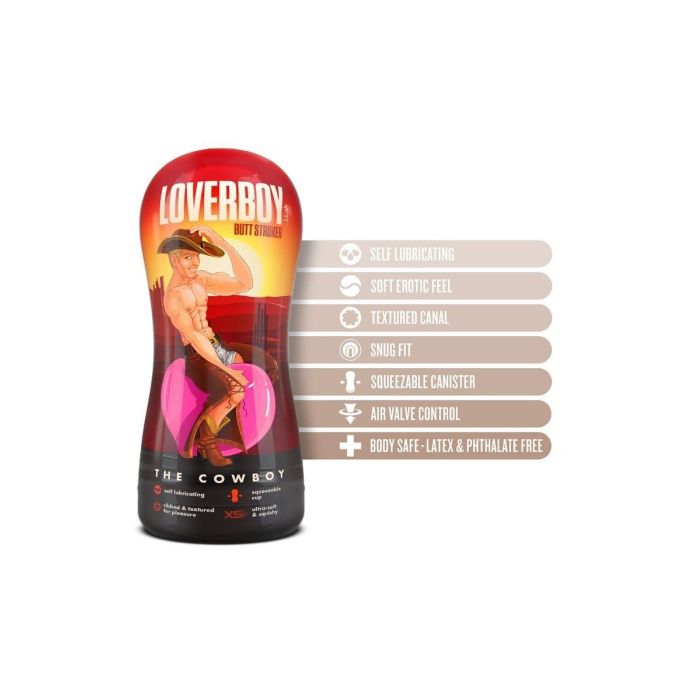 De Masturbator Loverboy Cowboy van Blush is zelf smerend, gewoon een beetje water of speeksel toevoegen en alles wordt glad. Door te knijpen in de cup en de PerfectFlo Air Valve opening te openen of sluiten aan de achterkant heb jij controle over de zuigkracht. De masturbators van Loverboy zijn zacht, flexibel en gevuld met sensationele texturen. Het materiaal bevat geen ftalaten, paraffines of latex en is zo realistisch. Zelf smerende eigenschappen zijn tijdelijk. Het gaat tot 12 keer mee. Maak de masturbator na gebruik schoon met water en zeep, droogdeppen en aan de lucht laten drogen.