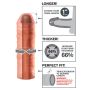 Deze unieke sleeve is ontworpen om je penis met maar liefst 2,5 cm te verlengen en tegelijkertijd de dikte met 66% te vergroten. Dankzij de sterke adering en de stevig gevulde eikel voel je niet alleen een verschil, maar je ziet het ook! De sleeve biedt niet alleen een visuele boost, maar ondersteunt ook je erectie, waardoor je langer en intenser kunt genieten van je intieme momenten.