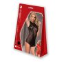 De Mesh Cutaway Body heeft een lekkere strakke pasvorm, waarin jouw verrukkelijke figuurtje goed tot haar recht komt. De body heeft een hoge, ronde hals en een mouwloos model. Onderaan heeft de body korte pijpjes voor een sexy hotpants look. Aan de voorzijde wisselen stroken wetlook materiaal en doorschijnend mesh elkaar op speelse wijze af en het wetlook bedekt net genoeg om je partner nieuwsgierig te maken naar meer.