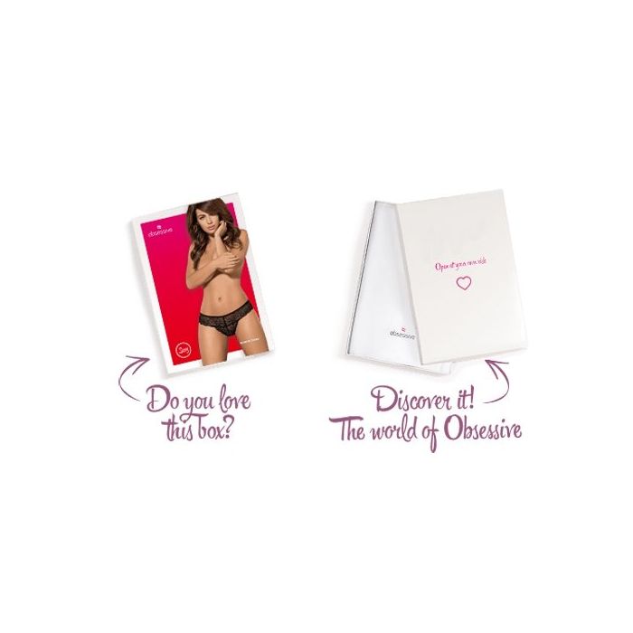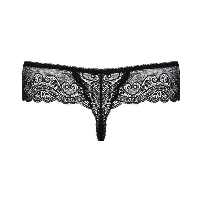 Straal van het zelfvertrouwen in de Miamor Kanten String - Zwart van het merk Obsessive. Deze romantische string gemaakt van sierlijk doorzichtig kant met geschulpte randjes, wordt geleverd in een stijlvolle verpakking en is daardoor erg leuk om cadeau te doen. Het zachte kant heeft multistretch kwaliteit en het kruisje is gevoerd met katoen voor een perfecte en aangename pasvorm.