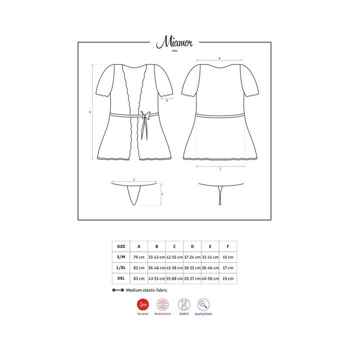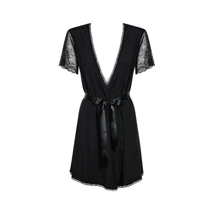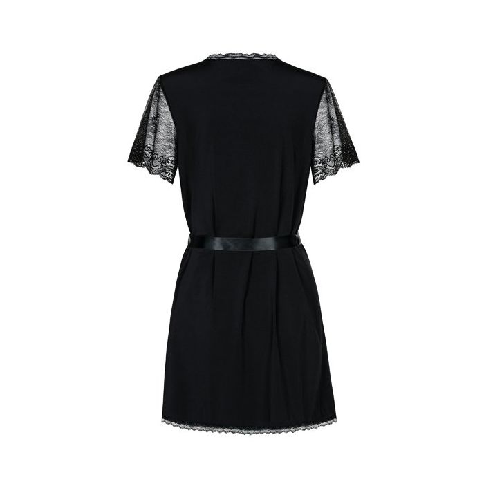 Put me on! Juicht de discrete verpakking van de Miamor Kimono en String - Zwart je toe. En terecht want in deze prachtige kimono en string van Obsessive zul jij er als een smakelijk hapje uitzien! De kimono is gemaakt van zachte stof dat soepel valt en is voorzien van korte mouwen van kant. Trek de string en kimono aan, strik het ceintuur van satijn in een mooie strik en voel je super sexy. Jij bent klaar voor een gewelige avond, dus geniet ervan!