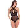De Midnight Halter Body is een nauwsluitende body met een charmant design. De halter body is gemaakt van doorschijnendstoffen. De halter banden lopen kruislings over de borst, waardoor een keyhole decolleté ontstaat. Door middel van satijnen strik linten is de body vast te knopen in de nek. Op de rug is een haaksluiting gemaakt en in het kruis drukknopen voor easy access.