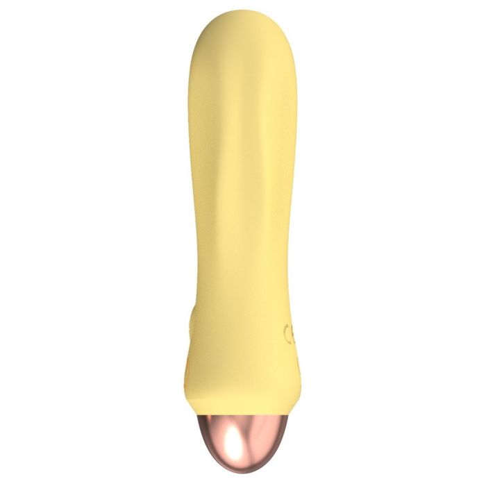 Klein maar oooooh zo fijn! Deze gele mini vibrator met een slank design heeft een geribbelde schacht voor stimulerende stimulatie. Met wel 7 verschillende vibratiestanden heeft deze bullet heel wat opties om uit te kiezen. Daarnaast is de bullet oplaadbaar met de bijgeleverde usb-kabel voor een gegarandeerd werkende toy bij je volgende avontuur. Het gebruiksvriendelijk en stijlvolle ontwerp ligt fijn in de hand en past makkelijk in je tas. Waterproof voor nat plezier in bad en onder de douche. Na gebruik is de Mini Bullet makkelijk te reinigen onder de kraan met een milde zeep en een toycleaner.