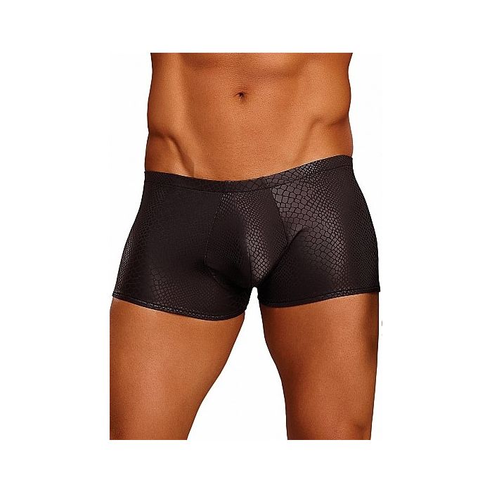 Heb je een spannende avond op de planning staan en wil je er zeker van zijn dat alle ogen op jou gericht zijn? Dan mag deze zwarte mini short met reliëf van het merk Male Power niet in jouw collectie met spannend ondergoed ontbreken. De short is gemaakt van nylon spandex en zit daardoor niet alleen erg comfortabel, maar heeft ook een kinky look. De slangenprint maakt deze kinky look natuurlijk helemaal compleet. Deze mini short met slangen reliëf heeft korte pijpjes, een voorgevormde pouch en is in meerdere maten beschikbaar. Voel je onweerstaanbaar en flirt er lekker op los wanneer je deze mini short draagt. Voor welke gelegenheid trek jij hem aan?