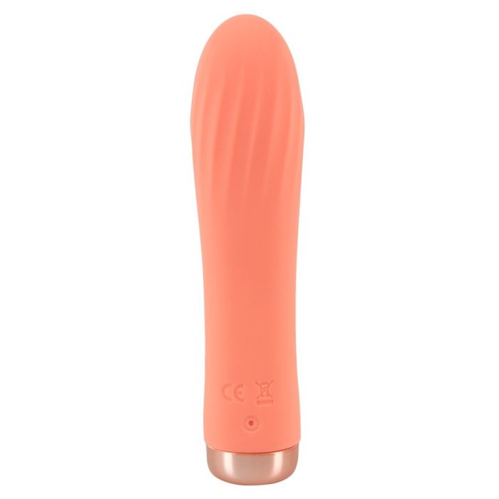 Een prachtige mini vibrator van Peachy! met een mollige kop en groef design. De vibrator heeft 10 vibratiestanden die je eenvoudig kunt bedienen door de pushbutton. De vibrator is gemaakt van hoogwaardig siliconen materiaal wat heerlijk aanvoelt. Je kunt hem opladen in 150 minuten en als hij volledig is opgeladen, kun je hem 50 minuten gebruiken. Zodra je klaar bent maak je de vibrator gemakkelijk schoon met toycleaner.