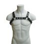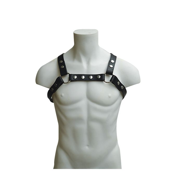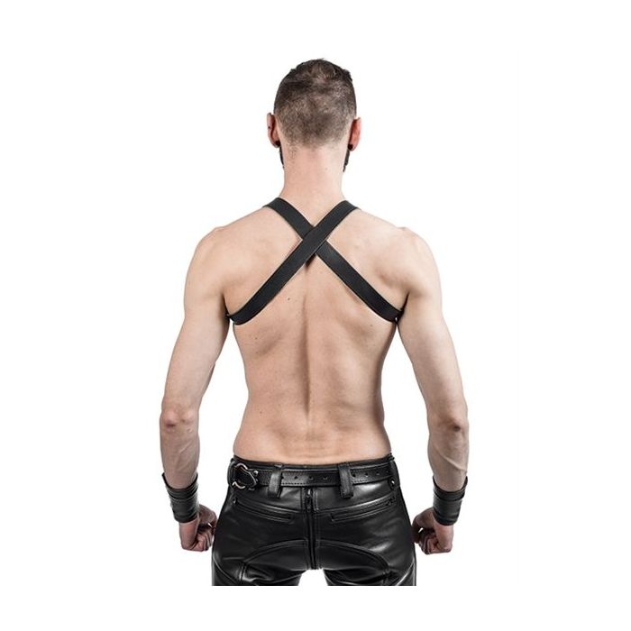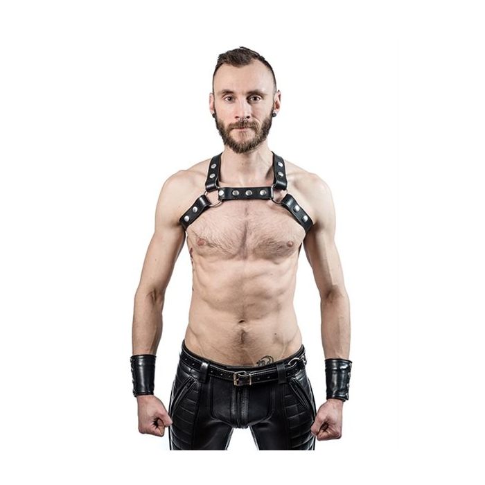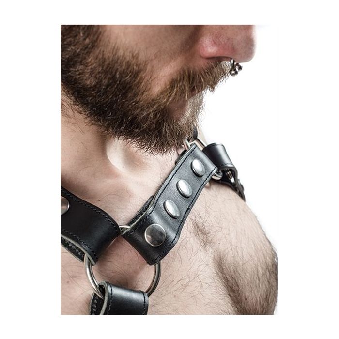 Leren harnassen zijn al decennialang een symbool binnen de gay BDSM-cultuur, geïnspireerd door klassieke beelden van motorrijders, gladiatoren en andere stoere mannen. Dit harnas straalt pure kracht, zelfvertrouwen en seksuele energie uit.