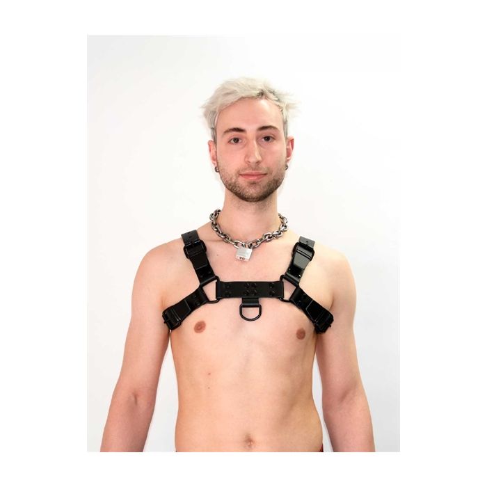 Het Mister B Leren Borstharnas is ontworpen met jouw comfort en stijl in gedachten. Met een verstelbare pasvorm die beschikbaar is in maten van S tot XL, kun je het harnas perfect afstemmen op jouw lichaam. Het stevige, maar flexibele zadelleer vormt zich na verloop van tijd naar jouw unieke lichaamsvorm, waardoor je een pasvorm krijgt die alleen maar beter wordt. Dit harnas is niet alleen een statement van kracht, maar ook een uitnodiging om jezelf te zijn en te genieten van elke ervaring die je aangaat.