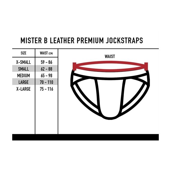 Ben jij op zoek naar een sexy en duurzame jockstrap voor al jouw kinky party's en sexy nachten in de slaapkamer? Ga dan voor deze premium jockstrap van Mister B! De jockstrap is gemaakt van soepel leer en door de voorgevormde pouch geeft hij jouw meest waardevolle bezit de beste ondersteuning ooit. De elastische band zit uiterst comfortabel en de banden die rond je billen lopen geven je billen een lichte lift. De pouch heeft een rits voor makkelijke toegang. Op de rekbare tailleband is het logo van Mister B te zien.