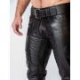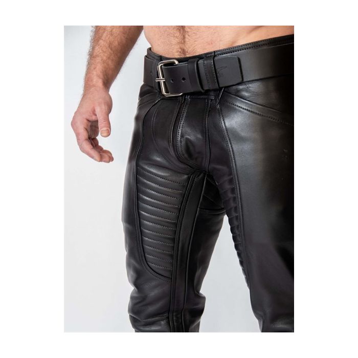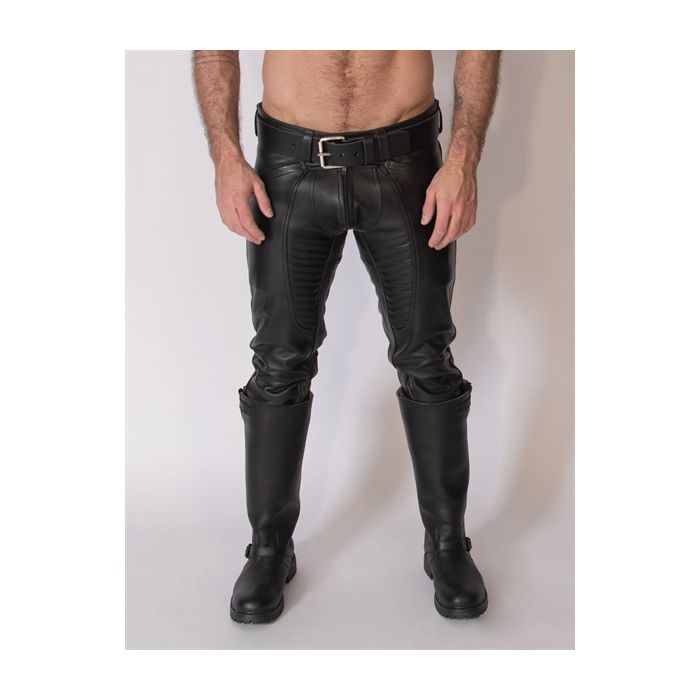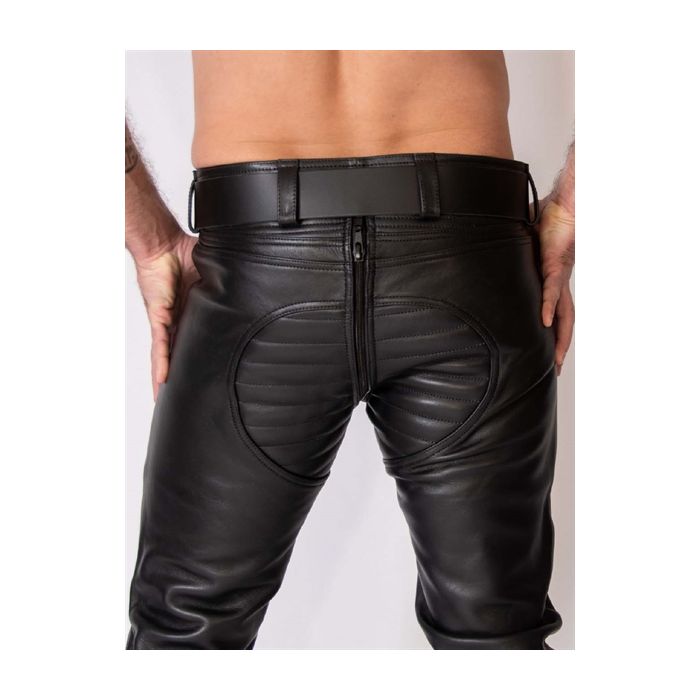 De Mister B Leren Thruster Jeans zijn ontworpen met veelzijdigheid en sexappeal in gedachten. Met een doorlopende ritssluiting voor een strakke afwerking, twee handige zijzakken en riemlussen voor je favoriete Mister B-riem, zijn deze jeans perfect voor elke gelegenheid. Combineer ze met een Mister B Leather Police Shirt en een leren jas voor een complete fetish-outfit, of houd het casual met een T-shirt en sneakers voor een moeiteloze streetwear-look. De mogelijkheden zijn eindeloos, en je zult altijd stijlvol voor de dag komen.