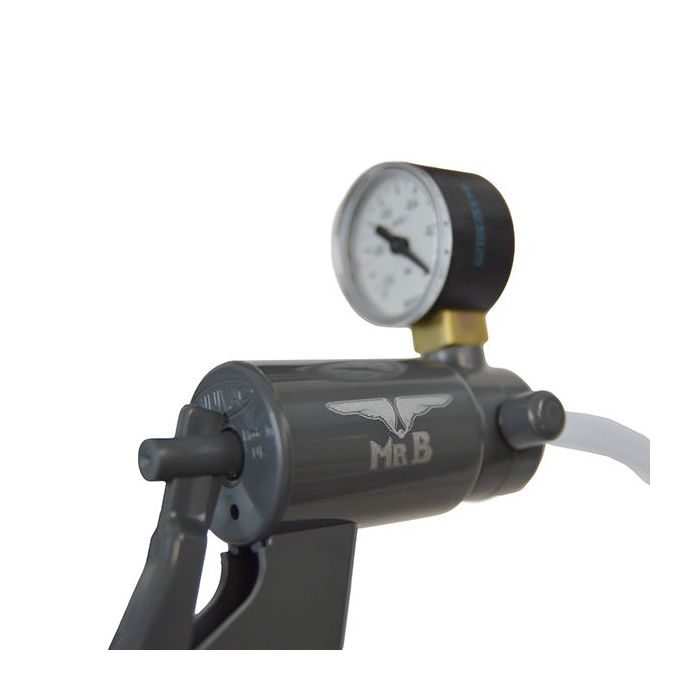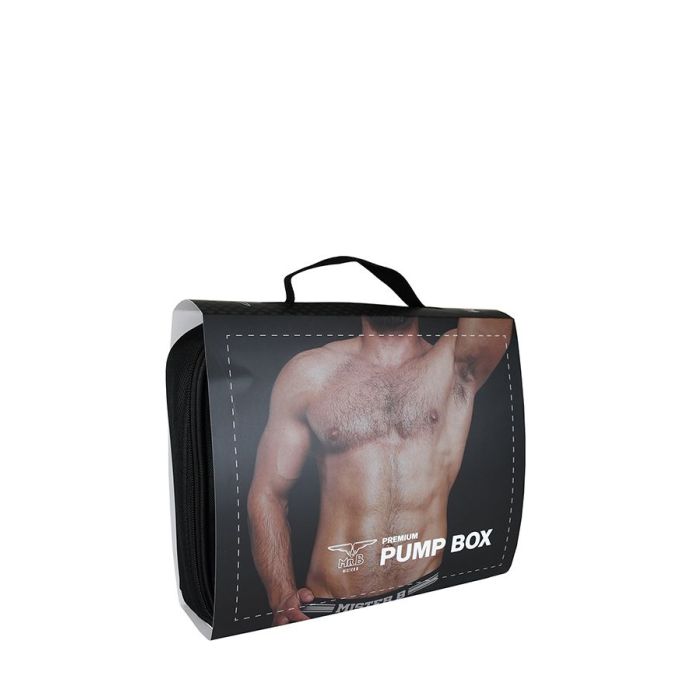 In de Mister B Pump Box bevindt zich een compleet vacuüm pompsysteem, een Mister B Pomp met trekhendel en drukmeter, een penis cilinder, een ontluchtingsventiel, een aansluitslang en een gedetailleerde gebruikershandleiding. Dit complete vacuüm pompsysteem wordt geleverd in een mooie en handige (stoffen) draagtas