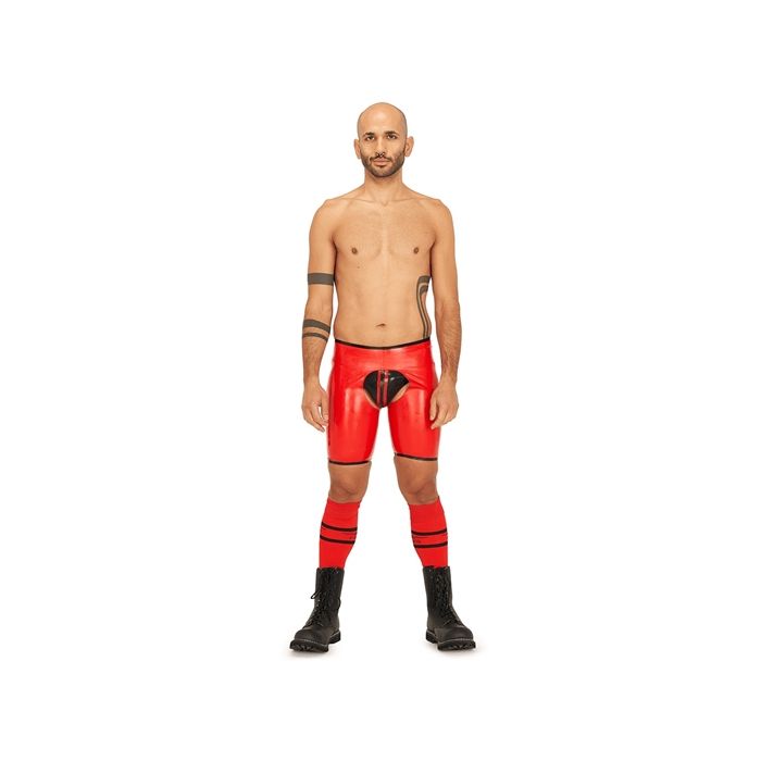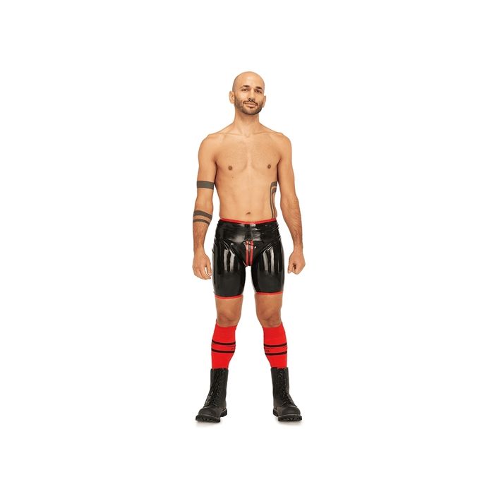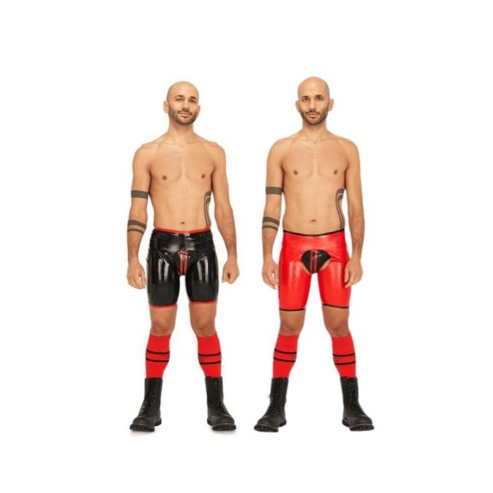 De nauwsluitende Mister B Rubber Short Chaps Reversible - Zwart/Rood hebben een rubberdikte van 0,4 mm. Deze strakke en glanzende chaps shorts zijn omkeerbaar, wat in feite betekent dat je twee nieuwe looks hebt voor de prijs van één. Je kunt deze shorts dragen als een zwarte chap met rode rubberen afwerking rond de taille en benen, of je kunt ze binnenstebuiten keren en ze veranderen in volledig rode rubberen chaps shorts. De Mister B Rubber Short Chaps Reversible - Zwart/Rood zijn perfect voor degenen onder jullie die van fisting en rubber houden. Ze zijn glad, glanzend en strak, en ze zien er waanzinnig heet uit, met of zonder een top. Met deze chaps shorts kun je je stijl en look gemakkelijk aanpassen, en ze zijn een geweldige aanvulling op je fetishkledingcollectie.
