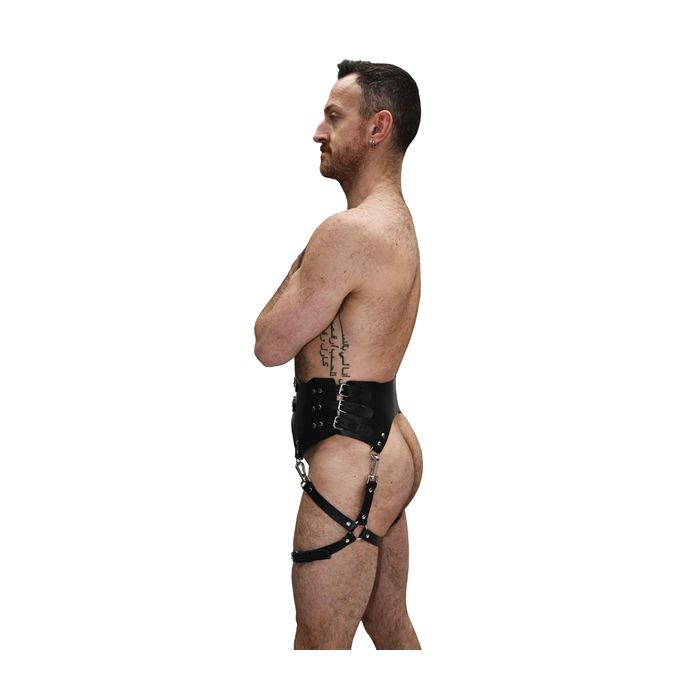 De superhete (en verstelbare) Mister B Serve Leather Garter Belt - Zwart combineert een leren korset met twee leren beenharnassen. Het resultaat is een stuk uitrusting dat seks en seksualiteit uitstraalt. Het ondersteunt je rug en taille, en zet de schijnwerpers op die heerlijke bovenbenen van jou. Dit is een look die rechtstreeks uit je favoriete porno komt! De Mister B Serve Leather Garter Belt - Zwart straalt serieuze mannelijke energie uit met een vleugje vrouwelijkheid. De Mister B Serve Leather Garter Belt - Zwart wordt geleverd met verstelbare leren banden rond de taille en benen, en heeft metalen details zoals studs, clips en ringen. Je kunt het combineren met een leren jockstrap, wat kanten lingerie, een string, of gewoon helemaal niets eronder dragen. Het is een veelzijdig stuk dat perfect is voor een spannende avond in de slaapkamer of een kinky feestje.