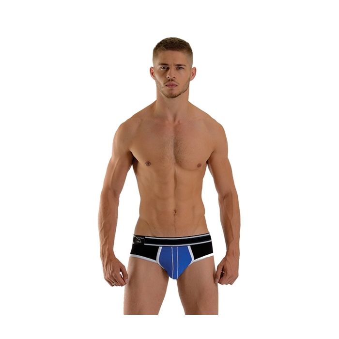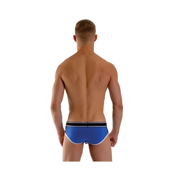 Deze super sexy slip is perfect voor elke man die van stijl en comfort houden. Hij is van rekbaar zacht stof gemaakt voor een heerlijk passende fit en een comfortabel gevoel. De brede tailleband rekt goed mee met al jouw bewegingen en is bedekt met een rubberen laagje voor een stoere look. Draag de Mister B Urban Bronx Slip - Blauw onder je dagelijkse kleiding of draag hem naar een sexy underwear party voor de perfecte look.