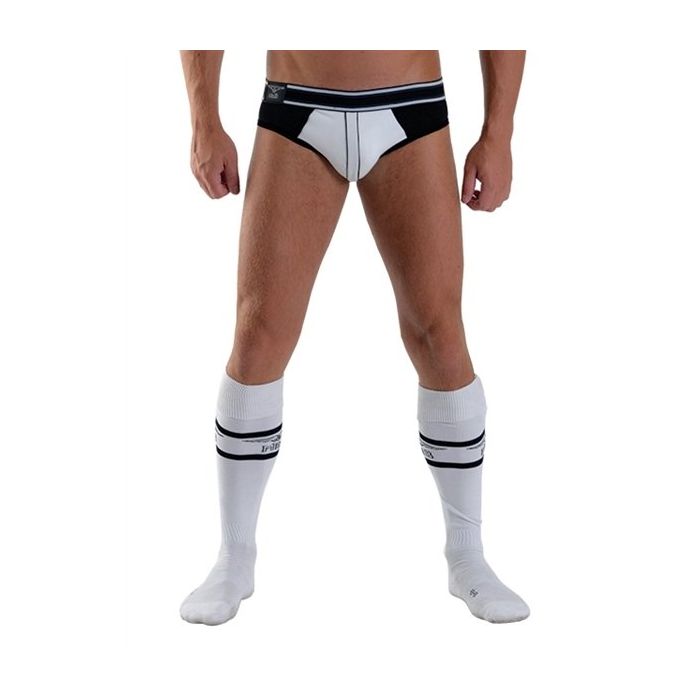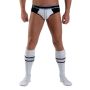 Om je outfit compleet te maken hebben wij voor jou deze geweldige Mister B Urban Football Socks - Wit. Ze passen perfect bij een sportieve outfit en zijn rekbaar voor een comfortabele fit. De sokken zijn kniehoog en hebben aan de bovenkant twee zwarte lijnen met daartussen het logo van mister b. Op de zijkanten aan de onderkant staat de maat van de sokken en de voet is gemaakt van ademend katoen zodat je niet zal gaan zweten in de sokken. Ga voor een stoere look met de Mister B Urban Football Socks - Wit.