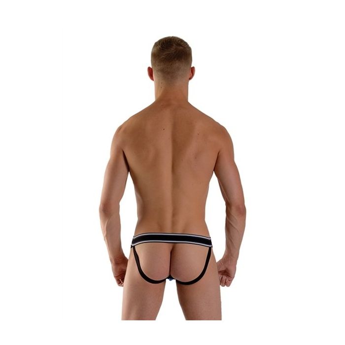 Laat jij ook graag je bilpartij zien? Met deze geweldige jock uit de urban collectie van Mister B zal jij gegarandeerd de show stelen. Hij is gemaakt van zacht katoen en de heupband en de banden die om de billen heen zitten zijn van elastaan wat heerlijk mee rekt voor een perfecte pasvorm. Daarnaast geeft hij de billen een perfecte lift zodat je mooie volle billen krijgt in je jeans.