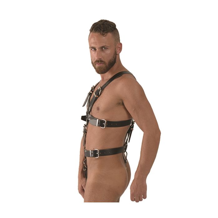 Het Mister B Master Harness is een iconisch full body harnas dat al jarenlang een vast item is in de collectie van Mister B. Dit harnas is niet alleen een lust voor het oog, maar ook een functioneel stuk dat je outfit naar een hoger niveau tilt. Het is ontworpen met een focus op duurzaamheid en comfort, waardoor het harnas in de loop der tijd steeds beter aanvoelt. De nieuwe versie heeft bredere banden gekregen, wat niet alleen zorgt voor een stoere uitstraling, maar ook voor extra ondersteuning. Hoewel het leer in het begin misschien wat stug aanvoelt, zal het na verloop van tijd zachter worden en zich perfect naar je lichaam vormen, waardoor je er jarenlang plezier van hebt.