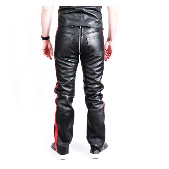 MisterMitch Leren Jeans met Rits - Zwart - Rood