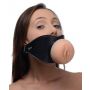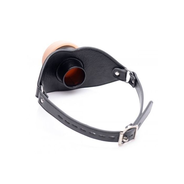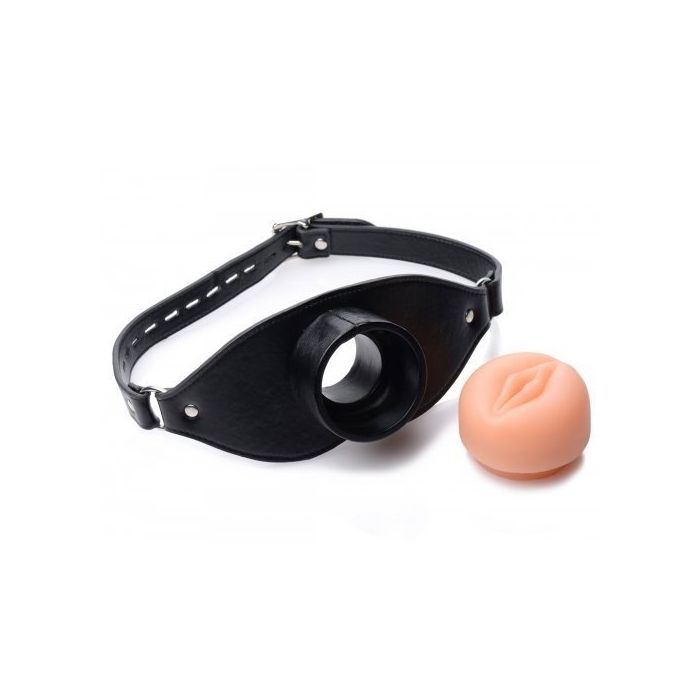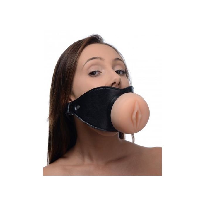 Laat je sub zijn of haar mond openen en schuif de achterkant van deze speciale gag in zijn of haar mond. De lippen en tanden komen om het inbrengbare gedeelte heen zodat de mond van je sub wagenwijd open staat. De voorkant heeft een masturbator look in de vorm van een mooi gevormd poesje. De lippen staan al een beetje open zodat jij je penis zo naar binnen kan laten glijden. Het gedeelte wat over de mond heen komt is gemaakt van stevig kunstleer en is achter in de nek te sluiten met een handig sluitsysteem. Jij kan er zelfs nog een extra hangslotje op zetten wanneer jouw sub dit nodig heeft. Druk, wanneer de gag strak en stevig om je sub heen zit zo je penis de vagina masturbator in en geniet van van de mond gag met pussy masturbator samen met je lover. De mastusrbator is te verwijderen zodat jij deze snel en hygiënisch kan reinigen voor de volgende keer. Was hem onder de warme kraan met een milde zeep.