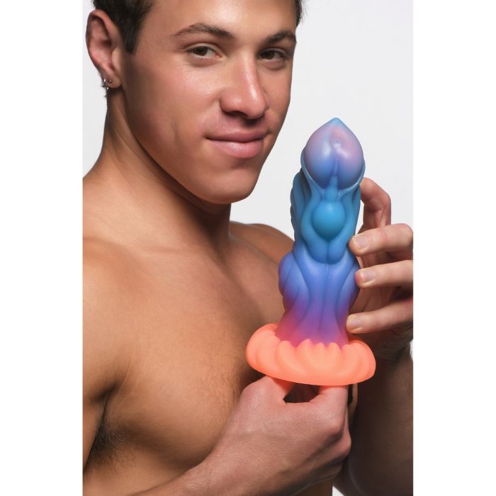 Verwen je ogen met buitenaardse bezienswaardigheden met dit buitenaardse beest! Zijn glow-in-the-dark staaf verlicht de donkere en onzekere nacht en zijn buitenaardse vorm zal rillingen van genot over je rug laten lopen! Deze lichaamsveilige dildo is gemaakt van hoogwaardige, ftalaatvrije siliconen en heeft een stevige kern en een zachte buitenkant, zodat hij in je strakste plekjes past. Kunstig vervaardigd met een zonnestraal van gelaagde blauw-, oranje-, roze- en paarstinten en glinsterende glitters verspreid over de schacht, als sterren verspreid over de hemel. Maar het meest aanlokkelijk is de vorm en grootte! De puntige punt glijdt gemakkelijk naar binnen, waarna je je grenzen kunt verleggen terwijl je geniet van de enorme hobbels, ribbels, ribben en getextureerde vormen langs de schacht die hem een uniek en buitenaards gevoel geven tijdens het rijden! De brede, geflensde basis heeft ook een zuignapfunctie, zodat je er handsfree mee kunt rijden. Of combineer hem met een strapon-harnas en doe mee aan een kinky cosplay- of buitenaardse ontvoeringsrollenspel! Was hem na het spelen met warm water en milde zeep, besproei hem vervolgens met een speelgoedreiniger en dep hem droog. Buiten direct zonlicht en hitte houden.