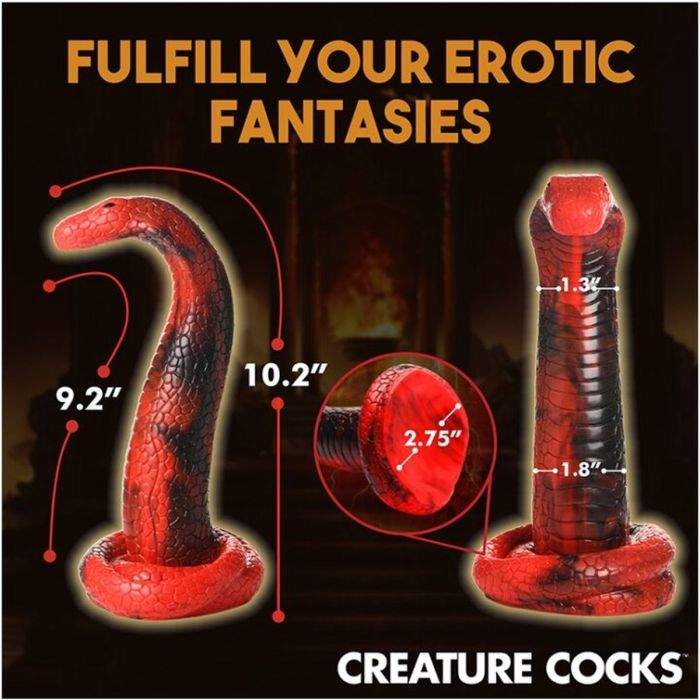 De King Cobra Siliconen Dildo is een onweerstaanbaar speeltje dat je fantasieën tot leven brengt. Deze verleidelijke dildo in een opvallende rode kleur heeft een totale lengte van 21 cm en een inbrengbare lengte van 18 cm, waardoor hij perfect is voor zowel avontuurlijke als comfortabele ervaringen. De unieke vorm en textuur zijn ontworpen om je zintuigen te prikkelen en je te laten genieten van nieuwe sensaties. Dankzij de sterke zuignapbasis kun je de King Cobra handenvrij gebruiken, wat je de vrijheid geeft om je volledig over te geven aan je verlangens. Gemaakt van hoogwaardige, lichaamsveilige siliconen, is deze dildo niet alleen veilig voor je lichaam, maar ook eenvoudig schoon te maken met warm water en milde zeep. Voeg de King Cobra toe aan je collectie en bereid je voor op fantasierijke avonturen die je naar ongekende hoogten van plezier zullen brengen!