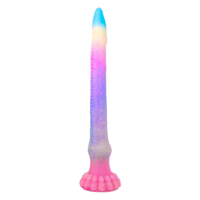 Maak je klaar voor een spannende ervaring met de Monster Dildo van NMC! Deze unieke dildo heeft een indrukwekkende lengte van 41,9 cm en is perfect voor degenen die op zoek zijn naar iets buitengewoons. Wat deze dildo echt bijzonder maakt, is het glow in the dark-effect, waardoor je zelfs in het donker kunt genieten van een opwindende sfeer. Gemaakt van hoogwaardige vloeibare siliconen, voelt het oppervlak zijdezacht aan en zorgt het voor een comfortabele en plezierige ervaring. Bovendien is de dildo flexibel en betrouwbaar, met een sterke zuignap die je in staat stelt om het op vrijwel elke gladde ondergrond te bevestigen. Of je nu solo speelt of met een partner, deze monsterdildo belooft een onvergetelijke tijd!