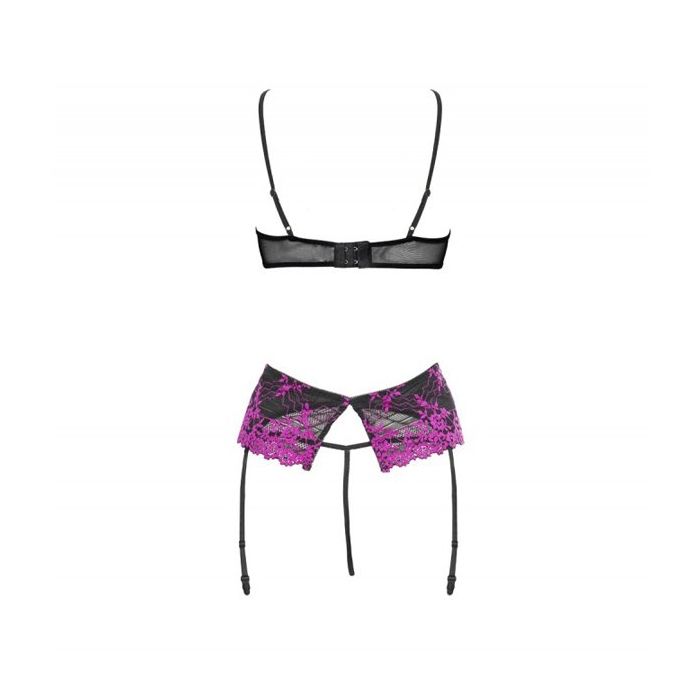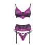 De Myfani Luxe Jarretel Set uit de Cabaret collectie van het merk CoFashion is een driedelige lingerie set gemaakt van heerlijk zachte en soepele materialen voor een perfecte pasvorm. De set bestaat uit een beugel bh, een jarretel gordel en een bijpassende string, alle drie gemaakt van sierlijk, tweekleurig bloemen kant voor een super verleidelijke uitstraling.