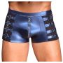 Maak kennis met de strakke, accentuerende broek van NEK, een must-have voor elke modebewuste vrouw. Deze broek is niet alleen stijlvol, maar ook functioneel met een handige onderrits in de buidel. De coole blauwe metallic matte look geeft je outfit een edgy twist, perfect voor zowel casual als meer formele gelegenheden. De bandjes met studs aan de zijkanten voegen een speelse, maar toch verfijnde touch toe, waardoor je zeker de aandacht zult trekken.