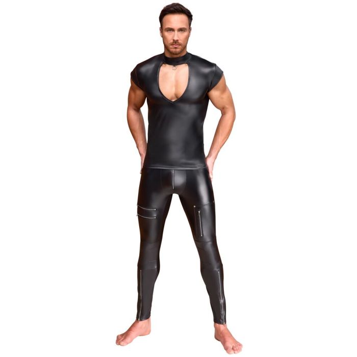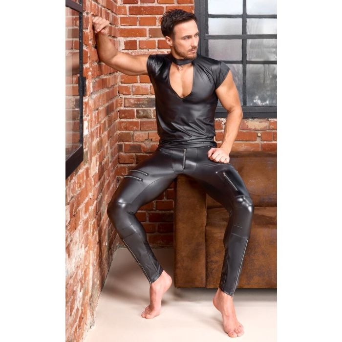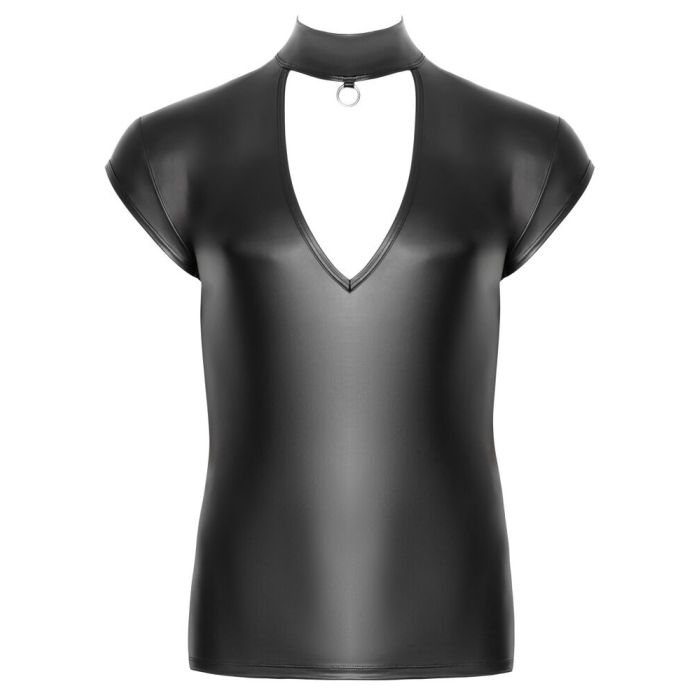Dit zwart accentshirt van NEK is een must-have voor elke modebewuste garderobe. Het shirt heeft een glanzende matte afwerking die een luxe uitstraling biedt, terwijl de afgezakte korte mouwen en de spannende V-uitsnijding aan de voorkant een gedurfde en aantrekkelijke look creëren. De opstaande kraag met ring aan de voorkant voegt een uniek detail toe, waardoor het shirt zowel stijlvol als opvallend is. Gemaakt van een hoogwaardige mix van 90% polyester en 10% elastaan, biedt dit shirt een uitzonderlijk draagcomfort dankzij de zachte en stretchy stof die zich perfect aanpast aan het lichaam. Dit maakt het ideaal voor zowel casual als meer formele gelegenheden, waarbij je altijd een statement maakt.