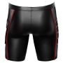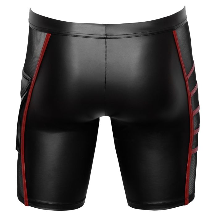 Deze nauwsluitende short van NEK is gemaakt van spannend materiaal en heeft een stimulerende stijl. De short heeft een zwarte matte look met contrasterende rode strepen, wat zorgt voor een opvallende uitstraling. Aan elke kant van de short bevindt zich een transparant fijnmazig inzetstuk, wat zorgt voor een speels en verleidelijk effect. Daarnaast heeft de short een klepzak op het linkerbeen, waarin je kleine items kunt opbergen. De short is voorzien van een etui met ritssluiting, waardoor je je spullen veilig kunt bewaren. Het materiaal van de short is zacht en rekbaar, waardoor het comfortabel aanvoelt op de huid. De elastische, beklede tailleband zorgt voor een perfecte pasvorm en maximaal comfort. Kortom, deze short van NEK is een must-have voor iedereen die houdt van spannende en stimulerende kledingstukken.