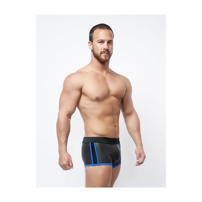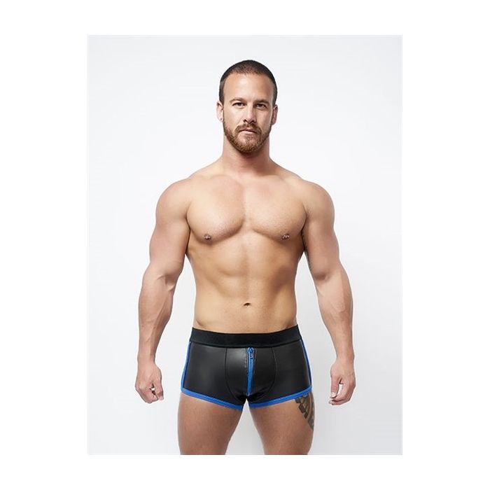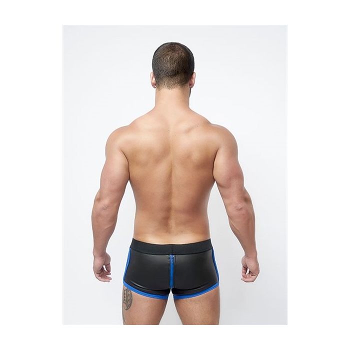 Deze Mister B Neopreen Shorts Full Zip heeft een uitstekende pasvorm rond de billen, waardoor je kont wordt benadrukt. Met 3-wegs volledige ritssluiting, Blauwe stiksels en net details aan de zijkant van de short, deze Mister B Neopreen Shorts Full Zip heeft een aansluitende en erotische pasvorm, waardoor je er thuis, tijdens het spelen of op een feestje geweldig uit zal zien. Neopreen is een rekbaar en dil rubber wat ook wel wordt gebruikt in surf materiaal en geeft een prachtige stretchy look en gevoel.