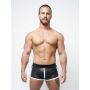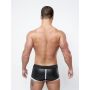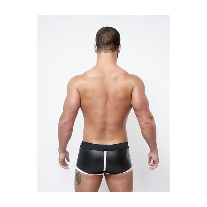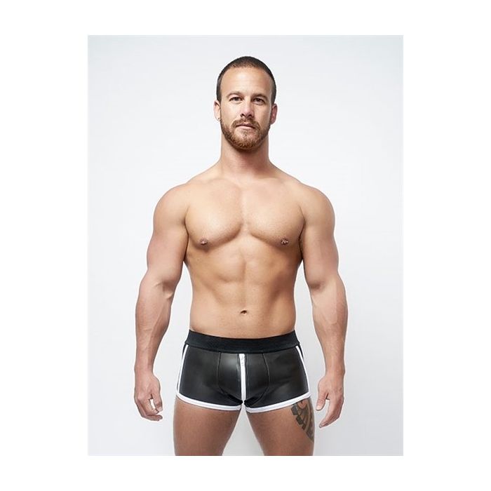 Deze Mister B Neopreen Shorts Full Zip heeft een uitstekende pasvorm rond de billen, waardoor je kont wordt benadrukt. Met 3-wegs volledige ritssluiting, Blauwe stiksels en net details aan de zijkant van de short, deze Mister B Neopreen Shorts Full Zip heeft een aansluitende en erotische pasvorm, waardoor je er thuis, tijdens het spelen of op een feestje geweldig uit zal zien. Neopreen is een rekbaar en dil rubber wat ook wel wordt gebruikt in surf materiaal en geeft een prachtige stretchy look en gevoel.
