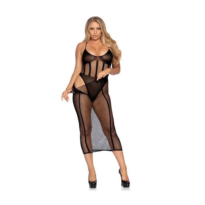 De Netstof Body met Rok - Zwart van Leg Avenue laat jouw lichaam stralen. Deze stijlvolle set bestaat uit een string body en een lange kokerrok. De body en de rok zijn gemaakt van heerlijk, elastische netstof voor een semi-transparant resultaat.