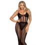 De body heeft smalle schouderbandjes die op de rug zijn gekruist. De body is opgebouwd uit fijn en minder fijn geweven netstof voor een prachtig uiterlijk. De lange kokerrok van netstof is over de body te dragen voor een classy uitstraling.