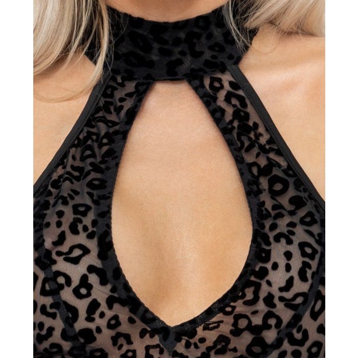 Zet een schrap voor een elegante leo-look! Deze lange off shoulderjurk van het merk Noir Handmade is elastisch en gemaakt van zacht materiaal met een fijne fluwelen leo-look. Vooraan heeft de jurk een diepe keyhole halslijn onder het kleine opstaande kraagje met haaksluiting. Combineer de jurk eenvoudig met een paar hoge hakken voor een geweldige look.
