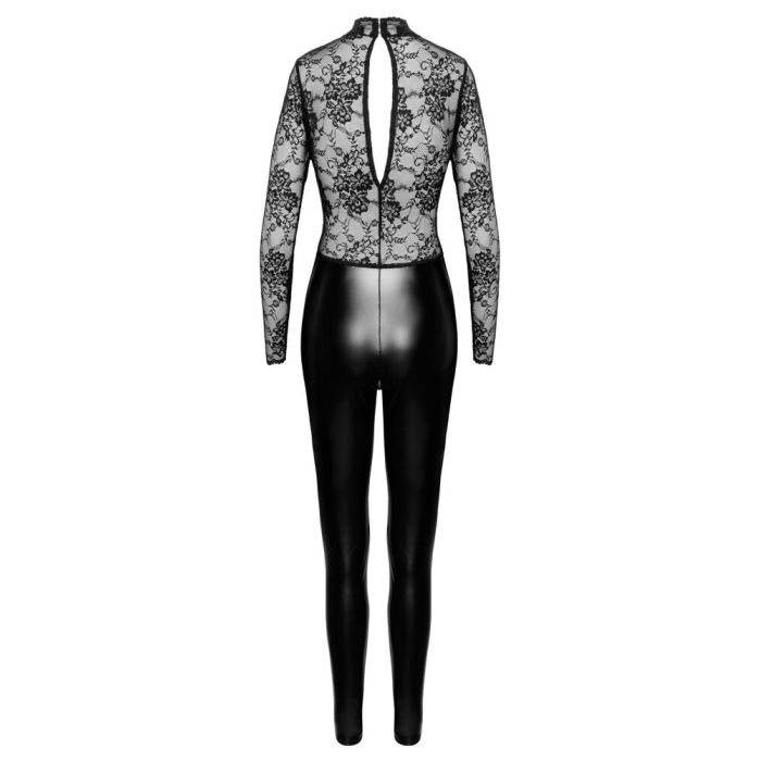 Noir Handmade Nauwsluitende Jumpsuit Kant & Wetlook - Zwart