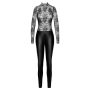Deze nauwsluitende zwarte jumpsuit van Noir is een absolute must-have voor elke modebewuste vrouw. Gemaakt van een luxe mix van prachtig kant en een power wetlook, voelt deze jumpsuit aan als een tweede huid en accentueert ze perfect de vrouwelijke vormen. De lange mouwen en de opstaande kraag met knopen geven een chique uitstraling, terwijl de split aan de achterkant een speelse en verleidelijke touch toevoegt. Dankzij de zachte en elastische stof geniet je van hoog draagcomfort, of je nu een avondje uit gaat of een speciale gelegenheid hebt. De praktische ritssluiting in het kruis maakt het niet alleen gemakkelijk om aan en uit te trekken, maar voegt ook een extra vleugje sensualiteit toe aan dit prachtige kledingstuk.