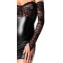 Bij het jurkje worden ook elastische kanten armwarmers met vingerlussen geleverd, wat een extra dimensie aan de outfit toevoegt. Deze armwarmers zijn niet alleen stijlvol, maar bieden ook een zekere mate van warmte en bescherming, waardoor ze perfect zijn voor koelere avonden. De combinatie van het jurkje en de armwarmers zorgt voor een gedurfde en modieuze uitstraling die zeker de aandacht zal trekken. Dit is een must-have item voor elke modebewuste vrouw die haar garderobe wil verrijken met een statement stuk.