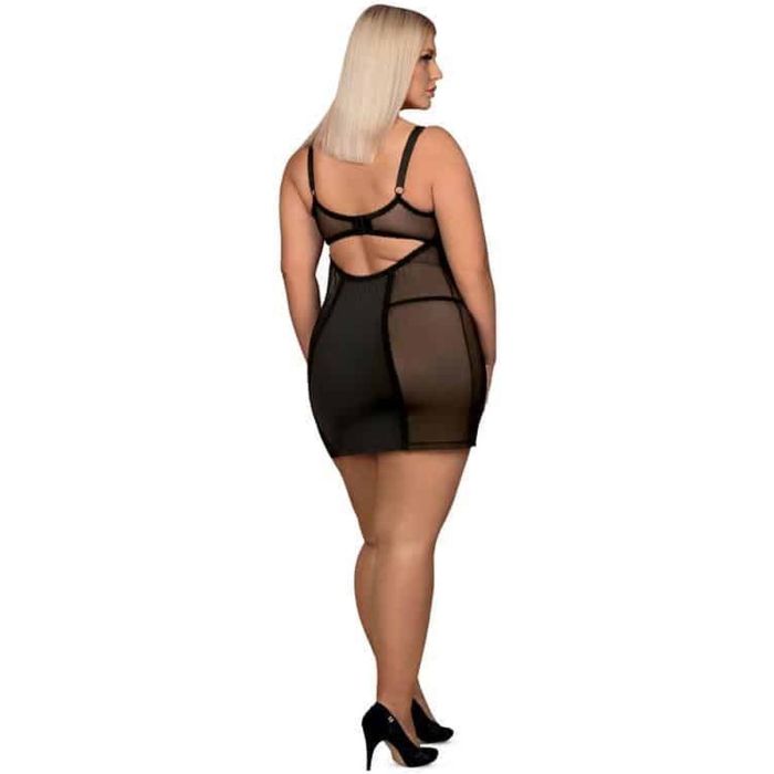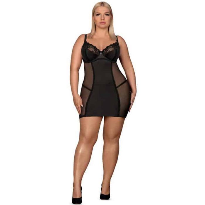 Voel je sexy in deze sexy chemise van Obsessive! Deze chemise is gedeeltelijk doorschijnend en heeft prachtige kanten details. De voorgevormde cups zijn voorzien van een beugel en de schouderbandjes zijn verstelbaar. Deze negligé wordt geleverd inclusief bijpassende string. Het materiaal is elastisch voor een goede pasvorm.