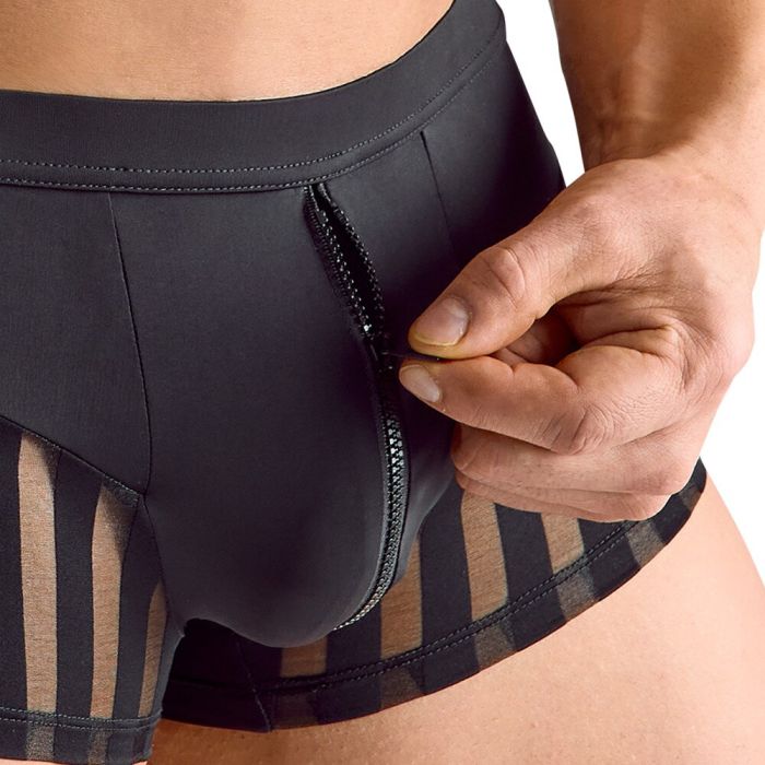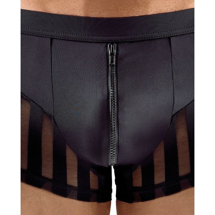 De strategisch geplaatste transparante strepen-inserts aan de zijkanten voegen een verfijnde dimensie toe, terwijl de onderlegde rits aan de voorzijde een speelse, erotische flair biedt. Met een samenstelling van 85% polyamide en 15% elastaan garandeert het broekje een uitstekende pasvorm en optimale bewegingsvrijheid, waardoor het een aantrekkelijke keuze is voor intieme momenten.