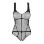 Deze zwarte zeer elastische body van Obsessive is een absolute must-have voor elke vrouw die er sexy en verleidelijk uit wil zien. Gemaakt van zacht zijdeachtig mesh, voelt deze body heerlijk aan op de huid en zorgt voor een comfortabele pasvorm. De geweven harnas-look accentueert de rondingen perfect, waardoor je er onweerstaanbaar uitziet. De opwindend strakke snit van deze body zorgt ervoor dat je figuur prachtig wordt benadrukt, terwijl de open kruisdetail een extra vleugje verleiding toevoegt. Of je nu je partner wilt verrassen of gewoon jezelf wilt verwennen, deze body is perfect voor elke gelegenheid. Voel je zelfverzekerd en sexy in deze prachtige zwarte body van Obsessive!
