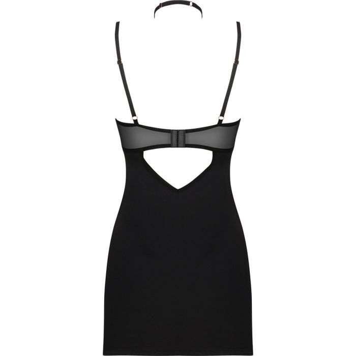 Deze elegante zwarte negligé Selinne van Obsessive straalt puristische elegantie uit. Gemaakt van zachte, elastische microvezel, is deze set perfect voor een avond vol verleiding en comfort.