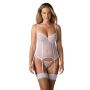 Dit transparante lingerieset Alissium van Obsessive is werkelijk tijdloos mooi! Het setje bestaat uit een jarretelshirtje en een string, beide gemaakt van fijne tule met gestructureerd kant. De charmante kleur van dit setje is tijdloos wit, waardoor het perfect is voor elke gelegenheid. Het materiaal is zacht en elastisch, wat zorgt voor een hoog draagcomfort gedurende de hele dag. De bh heeft zachte kanten cups met een subtiel decoratief detail ertussen. De bandjes en de haaksluiting aan de achterzijde zijn verstelbaar, evenals de bretels. De strak gesneden kanten string maakt de sensuele en verleidelijke look van dit lingeriesetje compleet. Gemaakt van 94% polyamide en 6% elastaan, terwijl de string is gemaakt van 90% polyamide en 10% elastaan. Let op dat Obsessive een aparte maattabel hanteert, dus zorg ervoor dat je de juiste maat kiest. Houd er rekening mee dat dit lingeriesetje zonder kousen wordt geleverd. Met dit Alissium lingeriesetje voel je je gegarandeerd sexy en zelfverzekerd!