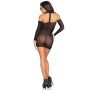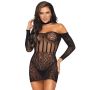 Het Off Shoulder Mini Jurkje met Choker - Zwart van Leg Avenue is een super verleidelijk jurkje. Het mini jurkje is gemaakt van fijn geweven nylon met een prachtig bloem patroon, met een net- en strepenstructuur aan de voorkant.