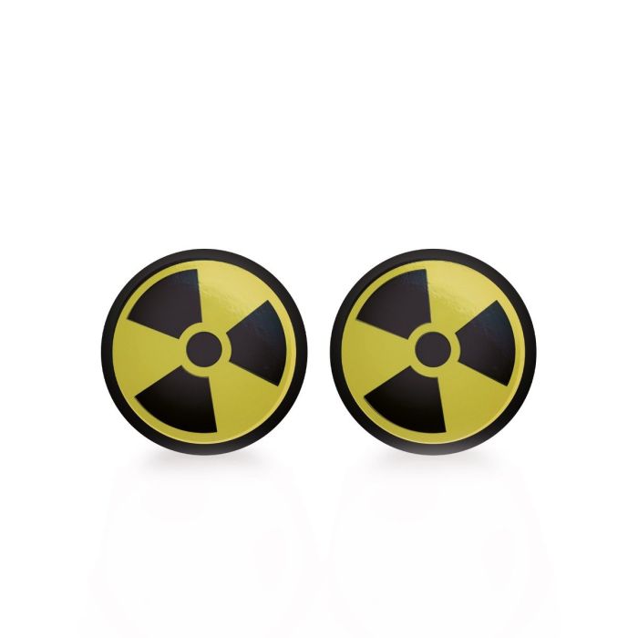 Bij de kappen worden gratis twee stickers meegeleverd met de gele picto's van radioactiviteit, die je indien gewenst op de doppen kunt plakken om zo een nog meer evil rubber gimpy look te creëren. Let er wel op dat dit geen permanente stickers zijn.