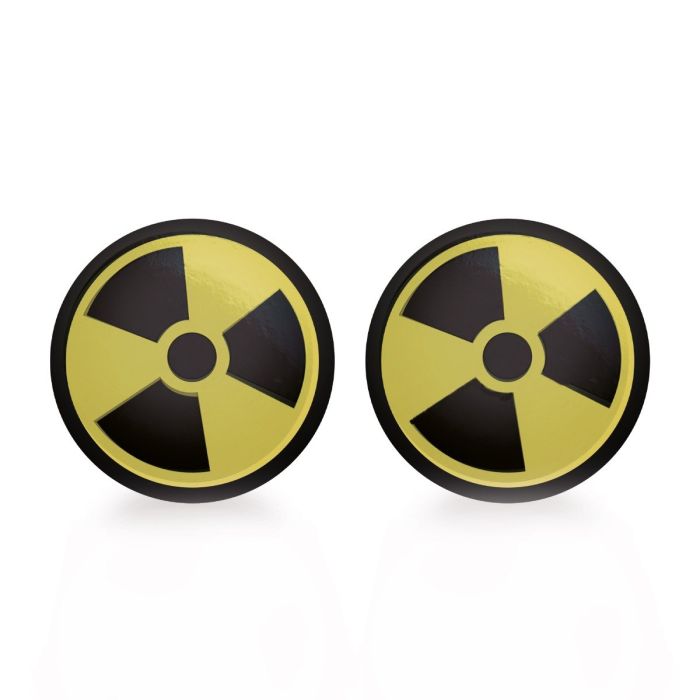 Als extra optie worden er twee stickers meegeleverd met gele pictogrammen van radioactiviteit. Deze kun je indien gewenst op de kappen plakken om een nog meer duistere en angstaanjagende uitstraling te creëren.