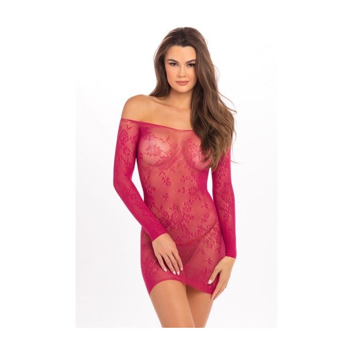 Jouw lichaam ziet er extra sexy uit in het Open Season Off Shoulder Jurkje - Roze. Dit strakke bodystocking jurkje van het merk René Rofé is gemaakt van zacht, stretch netstof. In de fijne net structuur zijn bloem details verweven voor een romantische aanblik. Het korte jurkje met lange mouwen en ontblootte schouders geeft een sensueel uiterlijk.